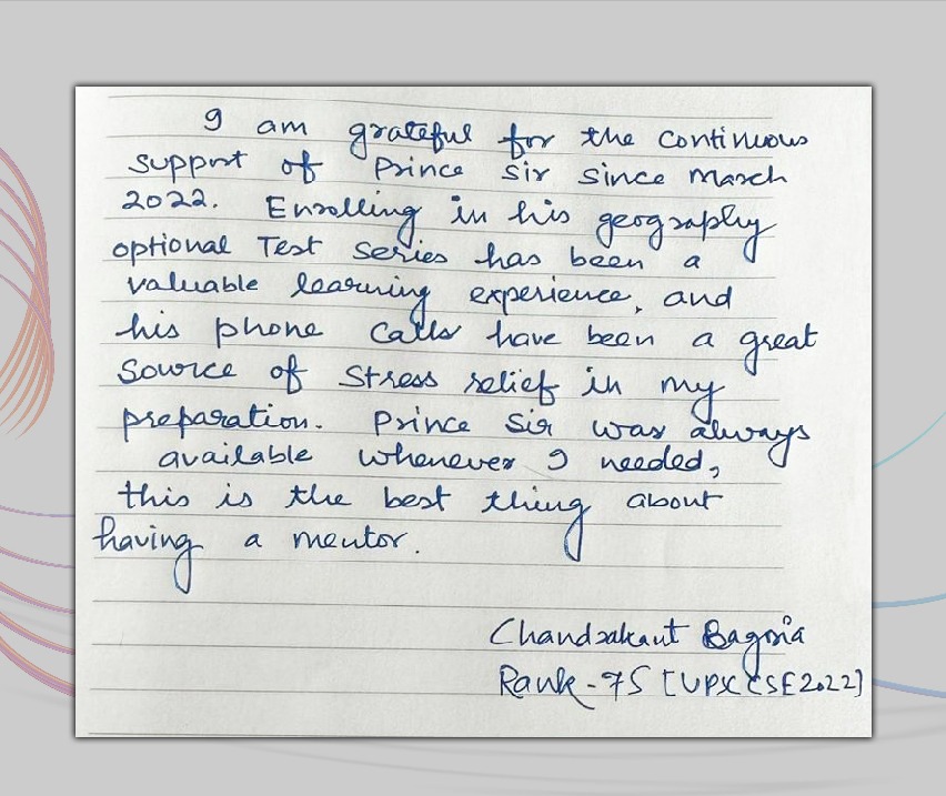 Prince Mishra Sir’s pedagogy rests on his in-depth knowledge of the subject and his ability to teach complex geography optional concepts in an easy-to-understand manner. He focuses on inculcating geographical perspective amongst students through teaching and discussion of previous years’ questions of IAS mains and interlinkages of different physical and human geography topics.